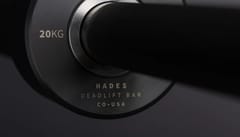 All measurements of the Hades™ bar adhere to powerlifting standards for federations that use a deadlift bar. Powerlifting knurl markings help with proper hand placement. The Hades™ deadlift bar is offered in a black Cerakote shaft with Duracoat® sleeves for a distinct, blacked out look. Duracoat® is a chemical process that hardens the outside of the steel, making it more wear resistant and adding a high degree of corrosion resistance. The sleeves are smooth for easy loading and unloading of the plates. And the 15.75” loadable sleeve length, longer than most other deadlift bars, means space for more weight plates on the bar. Bronze bushings are great for slower, strength-focused lifts and allow for consistent rotation, while ensuring incredible strength and stiffness to withstand heavy loads. The bar is topped off with premium metal endcaps featuring unique designs and laser etchings of the barbell name and weight on the inside of the sleeves. We have tested the Hades™ deadlift bar with some of the strongest people on the planet. Reach a new deadlift PR.